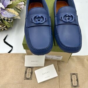 Men’s Gucci interlocking GG leather driver loafers size 12 made in Italy