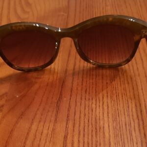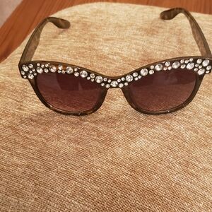 Fashionable tortoise shell sunglasses by DG. Frames trimmed with sparkly rhinestones, DG logo on sides. Dark lenses. Very good condition, no major scratches on lenses or scrapes on frames.