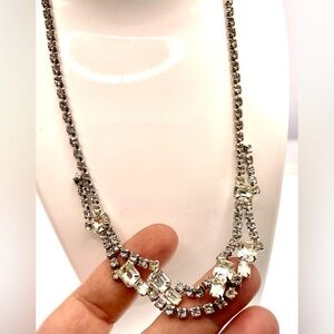 Vintage VTG Estate Jewelry Mod Modern Retro Boho Bohemian Classic 50s 60s 70s Faceted Crystal Rhinestone Necklace Choker MCM Mid Century