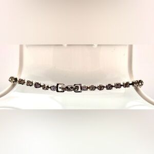 Vintage Silver Tone Prong Set Faceted Crystal Rhinestone Choker Necklace