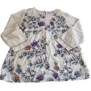 J. Jill Linen Blend Botanical Gardens Embroidered Top Size XL