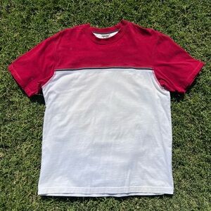 Mens y2k vintage crimson red white stripe color block surf dad normcore t-shirt