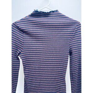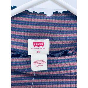LEVI'S XS Women's Flora Retro Stripe Rib Mock neck Long Sleeve Shirt Purple New