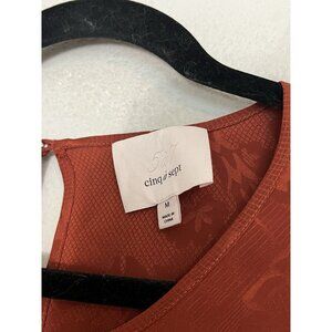 Cinq A Sept Silk Top Blouse Ruffle Asymmetric Size Medium Rust Orange Jacquard