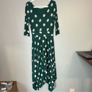 BODEN Maisie Jersey midi dress Sz 6 Forest carnation bud J0331 Asymmetrical Tall