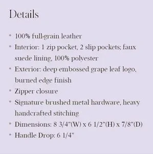Each piece has unique design characteristics. Stunning 100% leather. Extremely Durable. A Staple Wardrobe Classic Design. Sadly Discontinued 5 Star Product ⭐ ⭐ ⭐ ⭐ ⭐