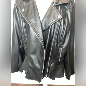 Women’s Jacket (Ashley Stewart Faux Leather Peplum Moto Jacket)