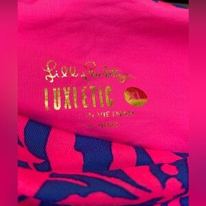 E UC Lilly Pulitzer Luxletic Weekender 24” Midi Leggings. UPF 50+ Luxletic leggings. XL. Pink Grenadine Flocking to Paradise. 24” inseam. Worn minimal number times. Excellent condition. No peeling.