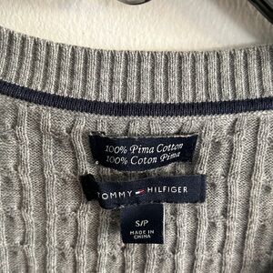 Tommy Hilfiger women’s S grey cable knit pima cotton v-neck sweater
