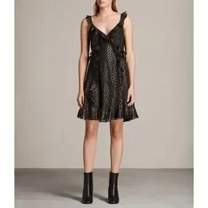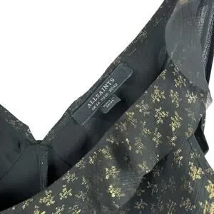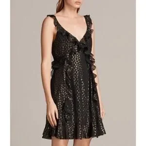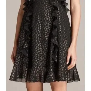 All Saints Derrell Black & Gold Ruffle Dress
