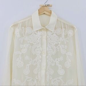 ETRO Hailey Voile Tonal Embroidered Silk Blend Button Front