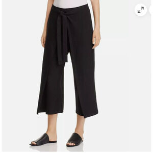 Eileen Fisher Stretch Crepe Black Tie Front Crop Pants Wide leg Small