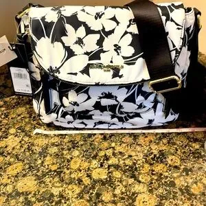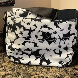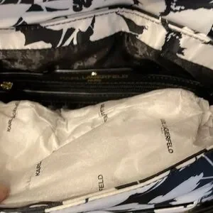 Karl Lagerfeld Paris Cara White/Black Floral Crossbody Retail 168.00 NWT. This is a stunning bag! This bag has so many compartments! Outside front has two zippered pockets with a center slip pocket. Flap top with large zippered compartment. Back has large compartment with snap closure. Inside has one zippered compartment and 2 slip pockets. Adjustable crossbody strap. Nylon bag. Carry everything you might need in this beautiful statement Karl bag! Brand new with tags. Retail 168.00 I ship fast. Mostly same day. Thanks for looking.