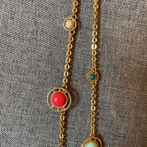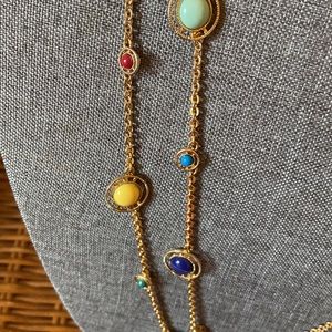 EUC perfects Vintage 90s Signed Talbots LONG COLORFUL Gold Toned NECKLACE 37” inches 2“ inch extension