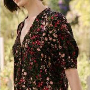 A charming THE GREAT. dress with a free-spirited feel, featuring a tiered design and a floral print. V-neck. Short puff sleeves with covered elastic cuffs. Tiered skirt and flounce hem. Ruffle trim. Partial button placket. Fabric: Lightweight, non-stretch weave. Removable slip lining. Machine wash.