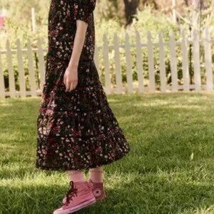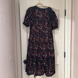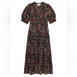 The Great Yonder Midi in Black Fresh Water Floral Cotton Tiered Dress, Size 3