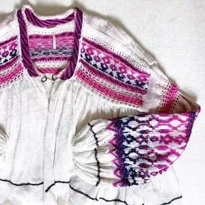 Free People Dreamland Knit Cardigan Womans Small Ivory Pink Balloon Sleeves. Oversized, cropped fit. Please note the tassel is missing and a slight unraveling on the underside of the sleeve. Please.