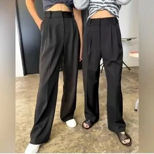 Everyone’s favorite. (Hence, the name). These tailored best-selling beauties, have a fluid wide leg silhouette with a high waist and front pleats. Crafted from a blend, suiting fabric with front pockets and a relaxed fit, these trousers stand tall on their own.