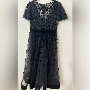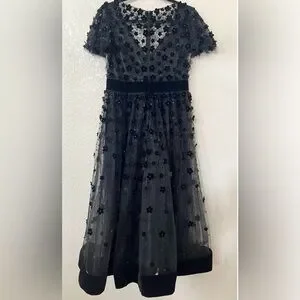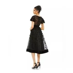 New Mac Duggal EMBELLISHED BUTTERFLY SLEEVE VELVET HEM MIDI DRESS in Black Sz 8