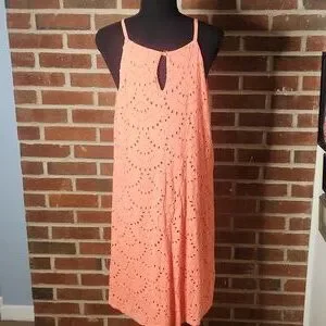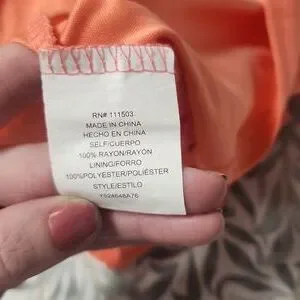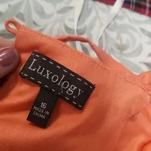 peach colored luxology dress, size 16, fully lined measured flat: 21 inches from underarm to underarm 37 inches from shoulder to hem