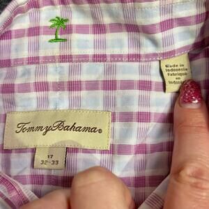 Tommy Bahama Shirt Men’s 17 32-33 Plaid Cotton Lightweight Corpcore Pink White