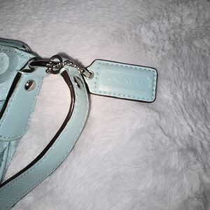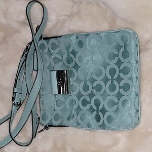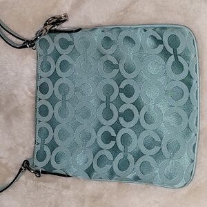 Mint Green or Teal -Op Art Signature C- Crossbody is beautiful w no major flaws. The hardware has some scratches. No cracks, rips, or tears. Straps are perfect no issues. Really in excellent condition other than scratches on hardware. Open to REASONABLE offers.