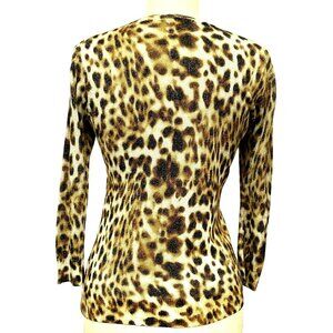 Joseph A. Metallic Leopard Print Button Front Cardi Long Sleeve Sweater Sz M