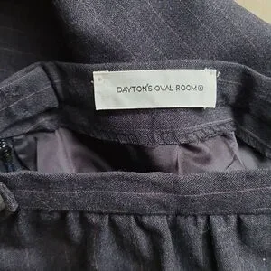 Cricketeer Dayton's Oval Room Tailored Long Lined Wool Skirt sz S Vintage. Pleated on the top A line Skirt. Size is marked "8" but measurements are small, 12.5" Waist 29.5" long. Excellent condition Navy with pinstripes