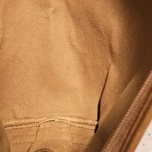 Clean interior with gold-plated logo and zipper closure.