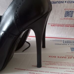 Stunning Ralph Lauren Purple Label Black Leather Oxford Lace-Up Pumps Booties Heels in black leather with beautiful brogue trim, leather insole, leather outsole, very good condition, Size 7 = EUR 37, perfect for fall & winter!
