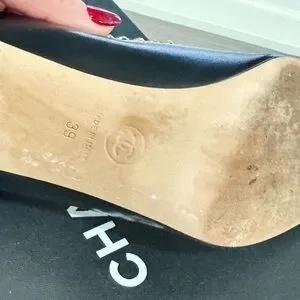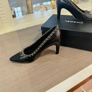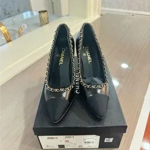 Black Chanel pumps with gold chain in great condition comes with box size 39