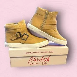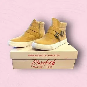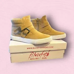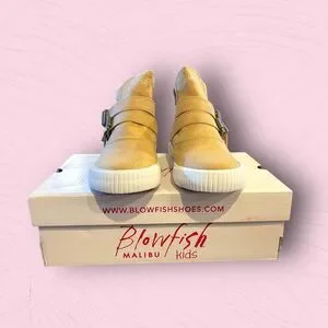 Blowfish FRAMATCHA Sneakers HIGH TOP Light Camel Tan SUEDE Girl’s Size 4.5 NEW