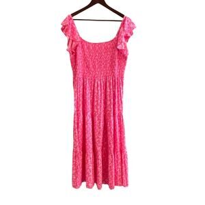 Lilly Pulitzer Size XL Jilly Smocked Midi Dress Aura Pink Check You Out Floral