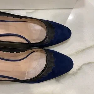 Blue suede and black mesh, perfect to wear at work with a cute dress or on weekends with your boyfriend jeans.