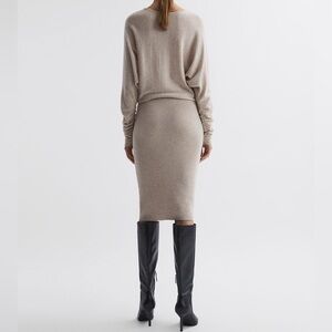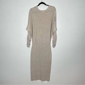 Reiss Leila Neutral Wool Blend Ruched Sleeve Dolman Midi Sweater Dress Size L