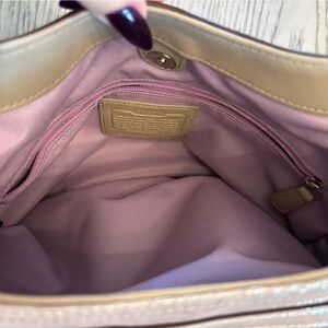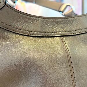 Coach Lynn SOHO Champagne Gold Leather Hobo Bag. ***some small flaws on the outside and bottom of bag, please refer to photos. No damage to the inside. 8.5” tall x 12” wide X 4.5” deep.