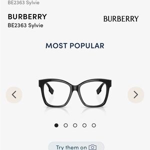 Burberry Sylvie black eyeglass frames 53-17-140. Has prescription progressive) lenses (info on pic) and original clear lenses included. Case, wipe also included. Like new condition.