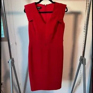 Ninewest Womens Stretch V-Neck Cap Sleeve Bodycon Sheath Pencil Dress Red Size 6