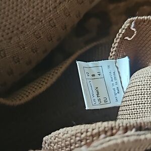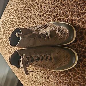 Excellent condition! Women's Pecan color Suavs Timber Legacy. Easy to slip on high tops that can be dressed up likes boots. Removable and washable foam inside lined .Flexible stitched rubber sole bends right along with your feet movement. Super Comfortable shoe,boot,slipper. As you can the sizes are 10 women, men's 8.