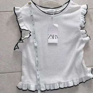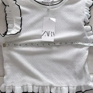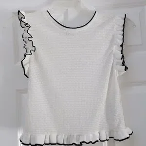 ZARA Sweater Vest NWT with Ruffles and black trim size L