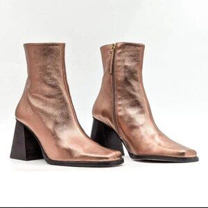 Alohas Women's South Shimmer Quartz Rose Gold Leather Booties Heeled Boots NWT