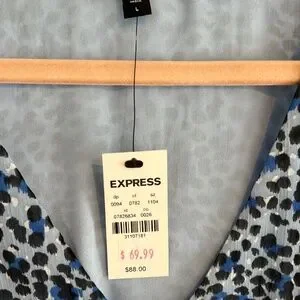 Beautiful Express blue and black dress with elastic waist, lined and 3-tiered ruffles. Size Large. Measurements: length down back 33.5”, elastic waist 14-21” across, pit to pit 20.5”. Light and flowing polyester dress.
