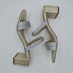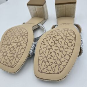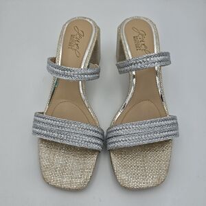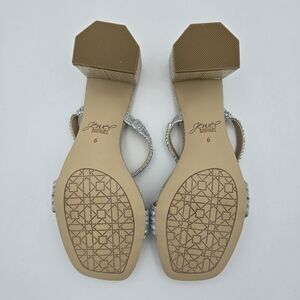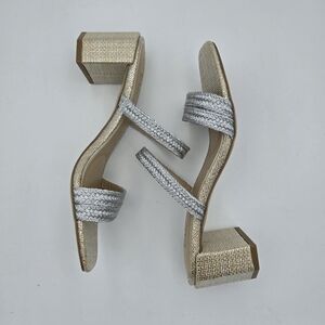 NWOT Jewel Badgley Mischka Heat Textured Block Heel Mule Slide Sandals, Silver 6