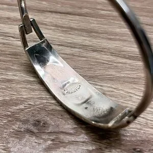 Vintage alpaca Mexico sterling silver cuff with clasp closure. Fits a small size wrist, measurements shown.