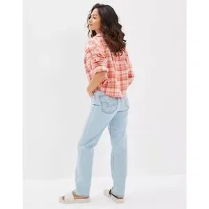 NWT American Eagle Cropped Plaid Flannel Button Down Shirt