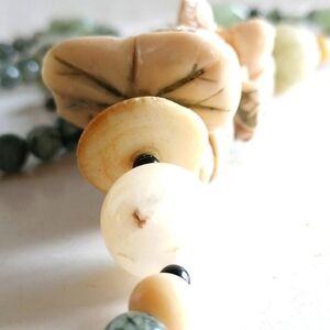 NETSUKE NECKLACE FACETED CANADIAN JADE HAND CARVED JADE FLOWER AND