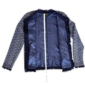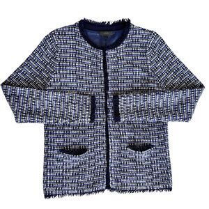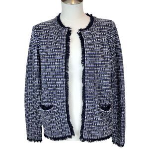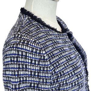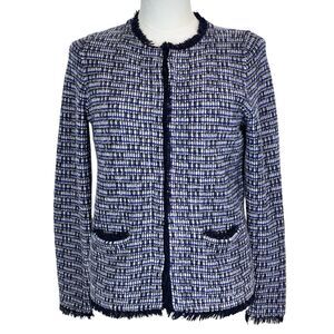 J Crew Knit Tweed Cardigan Blazer Jacket Sz S Lined Fringe Detail Hook Eye Close