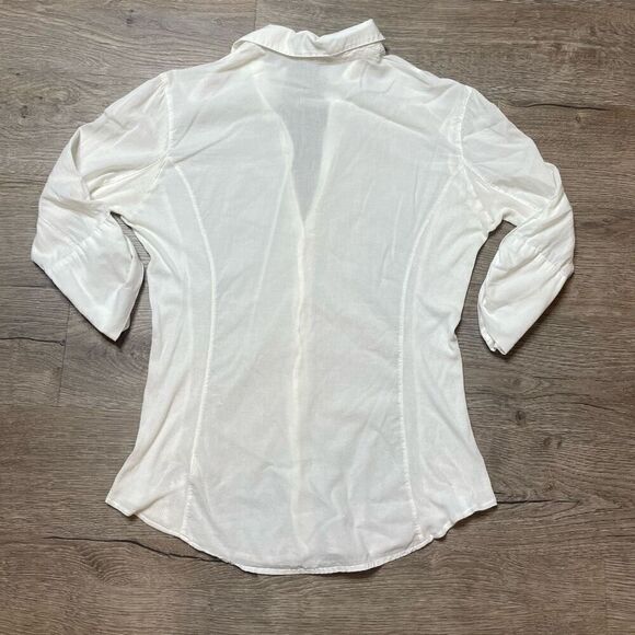 JAMES PERSE White Blouse Button Up Top Size 4 Cotton Collared 3/4 Sleeve
