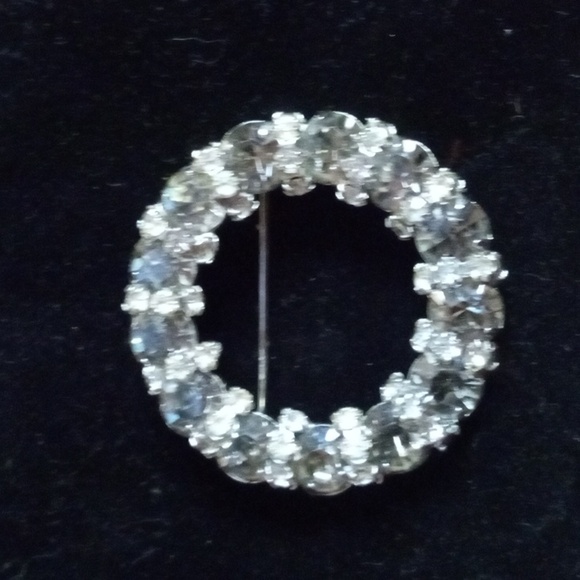 Vintage Stamped Warner Vintage Prong Set Diamente Pave Rhinestones Sliverplate Donut Circle Brooch Pin 1960's Excellent Condition