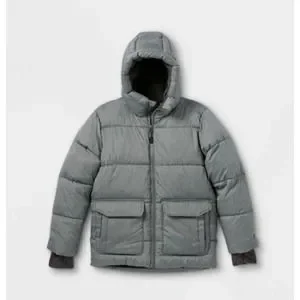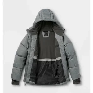 All In Motion Boys Girls Short Puffer Jacket Large 12/14 Gray Extendable…